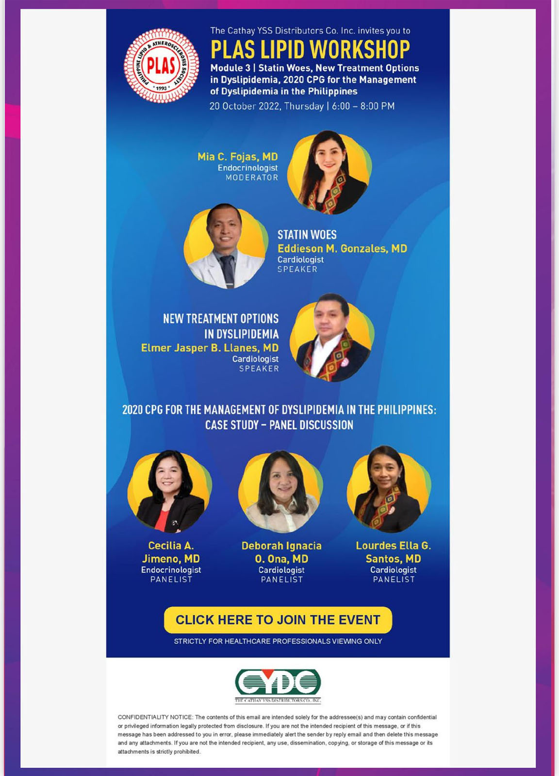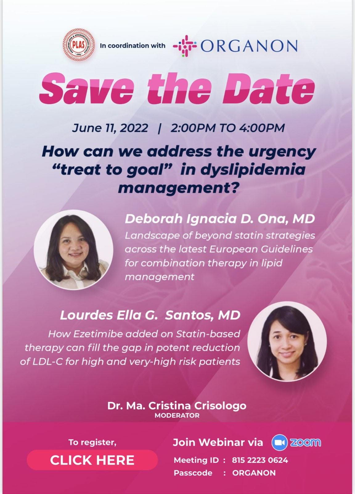 • Consent from authors will be taken for possible posting of winning abstracts at the Philippine Lipid and Atherosclerosis Society website and Facebook pages.