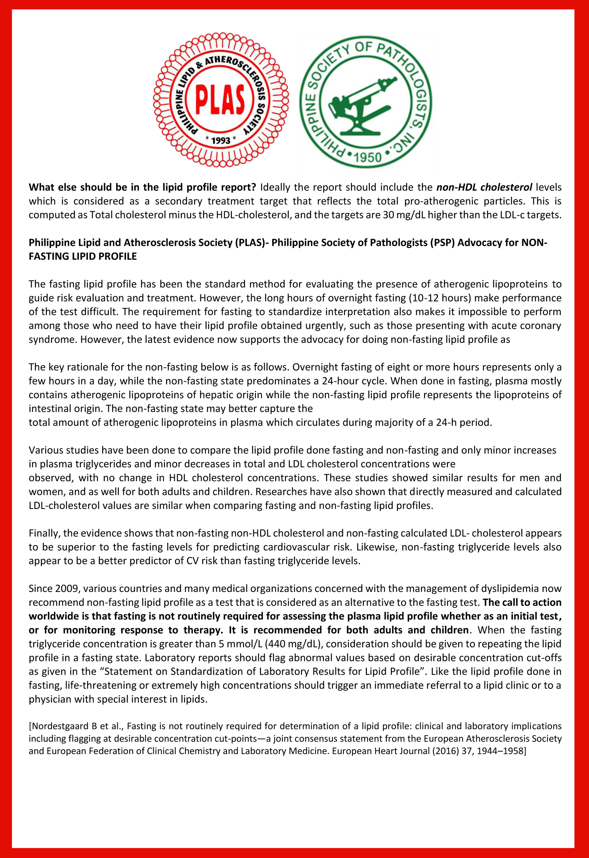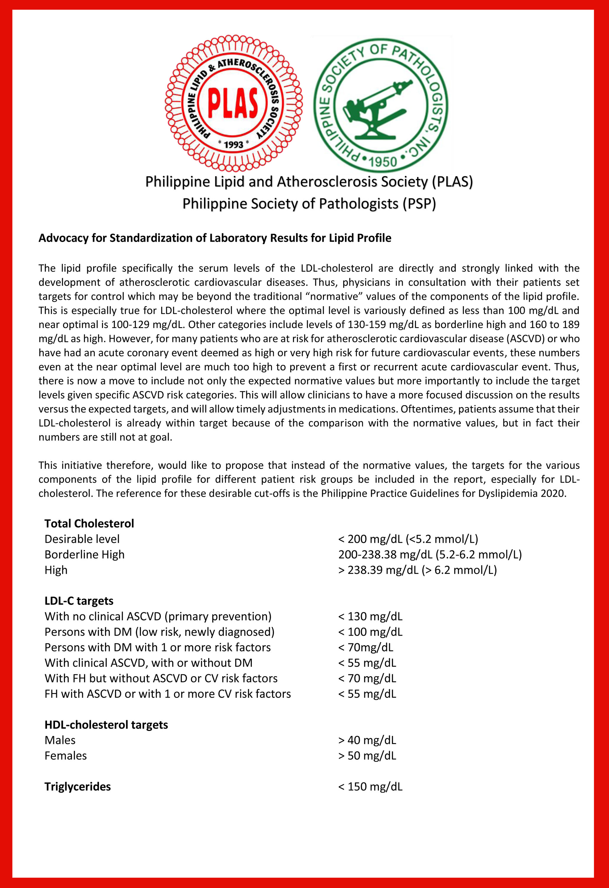 Philippine Lipid and Atherosclerosis Society (PLAS) - Philippine Society of Pathologists (PSP)