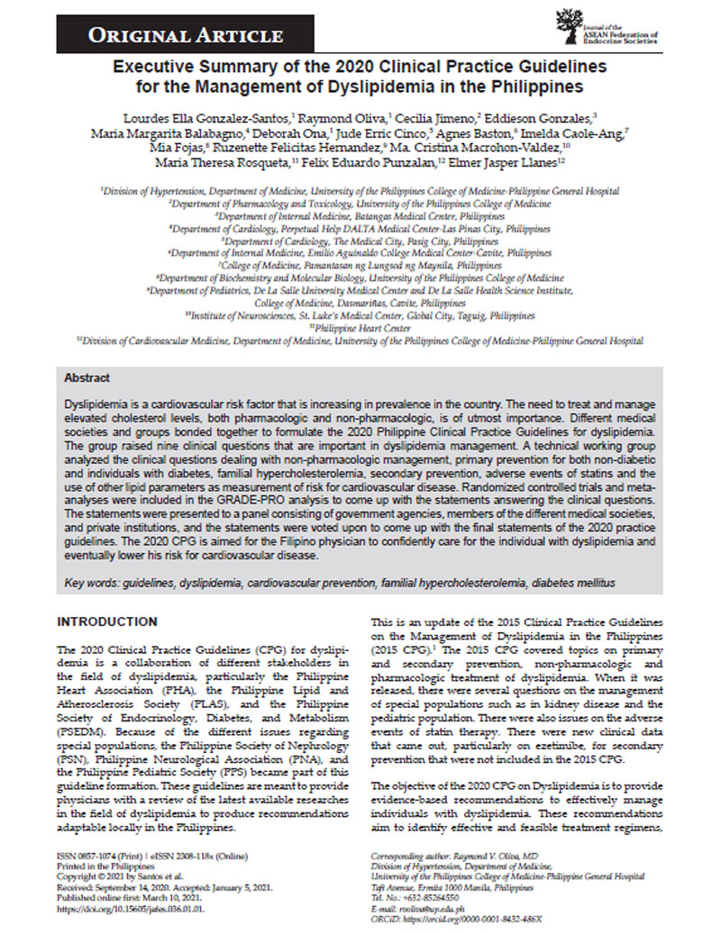 Executive Summary of the 2020 Clinical Practice Guidelines for the Management of Dyslipidemia in the Philippines